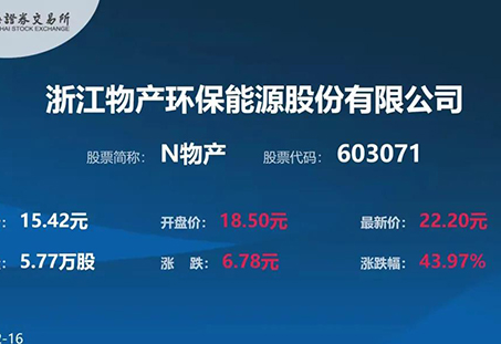 今天上午,物产中大集团旗下物产环能(股票代码:603071)在上交所主板IPO上市,股价高开22.2元/股,开盘...