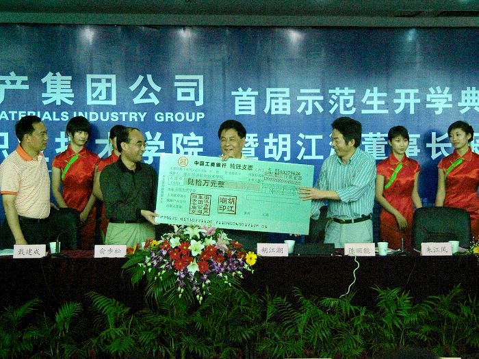 随后,举行了2006年度“浙江物产奖学金”的授予仪式。胡江潮董事长代表集团公司,向学院领导授予了60万元人民币的“浙江物产奖学金”。今后,集团公司将每年安排相应数额的奖学金,用于“浙江物产示范生”的教育和培养。