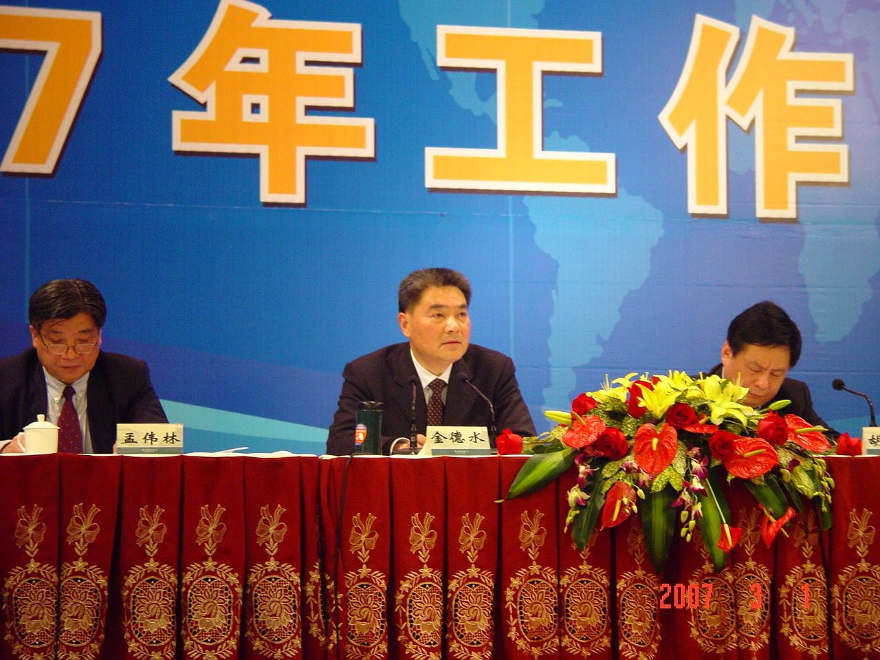 3月1日下午,金德水副省长在百忙中专程前来参加了集团工作会议,亲切慰问了集团广大干部员工,与集团领导一起向获得集团2006年度绩效先进的单位和推进流通产业化先进单位及个人颁奖,并在会上作了重要讲话。金副省长首先代表省政府对浙江物产2006年工作取得的可喜成绩表示充分肯定,并要求集团全体干部员工进一步认清形势,大力推进流通现代化进程,切实提高浙江物产集团综合竞争力,做强做大,做精做久,为推进浙江经济社会又好又快发展作出新的更大的贡献。