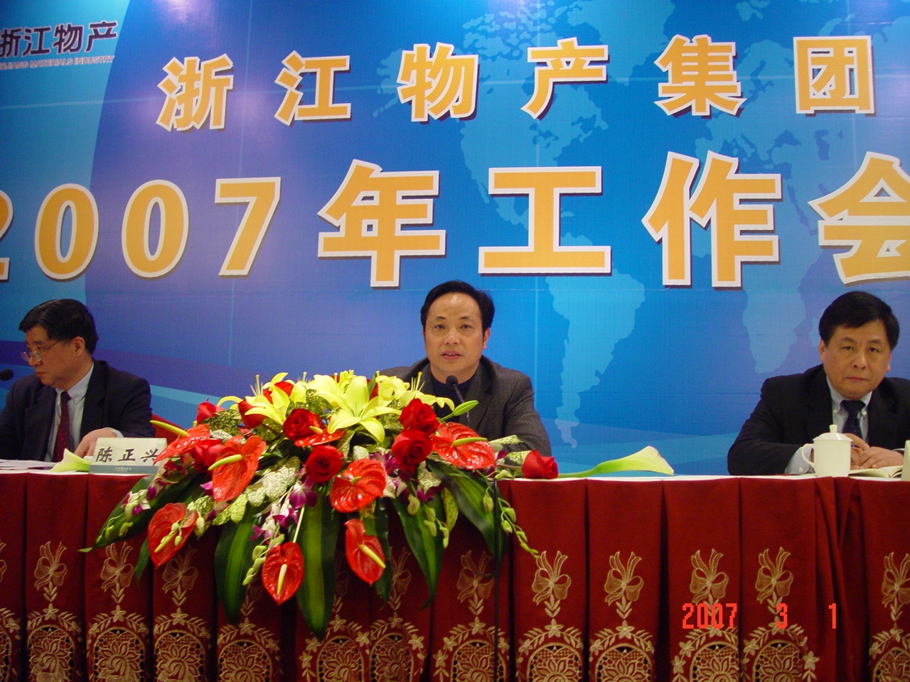 浙江物产集团2007年度工作会议于3月1日至2日在杭州黄龙饭店召开?;嵋樘岢?007年集团工作总体方针是:提升素质,提升核心竞争力;工作重点是:着力推进流通产业化进程,着力提高资源配置水平,着力强化有效性管理,实施人力资源规划,实施集团品牌化经营,加强班子和团队建设,努力实现浙江物产全面、持久、快速发展。年度经营预算目标是:经营规模680亿元,其中主业经营559.94亿元,进出口总额13.5亿美元,利润总额7.16亿元。