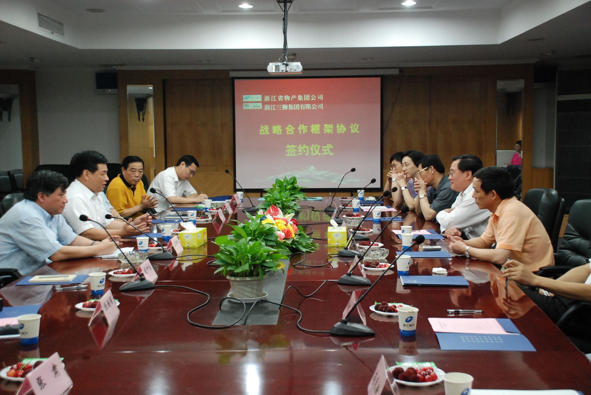 6月21日下午,浙江物产集团和浙江三狮集团战略合作座谈会暨签约仪式在我集团总部会议室举行。浙江三狮集团姚季鑫董事长和浙江物产集团胡江潮董事长代表合作双方共同签署了《战略合作框架协议》。