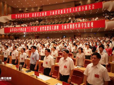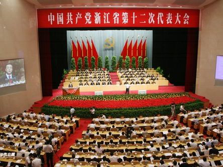 中国共产党浙江省第十二次党代会于6月12日至16日在省人民大会堂隆重召开(图1)?;嵋檠【俨苏憬⌒乱唤焓∥?、省纪委,通过了关于十一届省委报告的决议和关于省纪委工作报告的决议,并选举产生了我省出席党的第十七次全国代表大会的代表。我集团公司党委书记、董事长胡江潮同志和物产化工公司党委副书记、董事长周冠女同志作为会议代表出席了省第十二次党代会。图2为胡江潮同志(右一)在省党代会开幕式上。