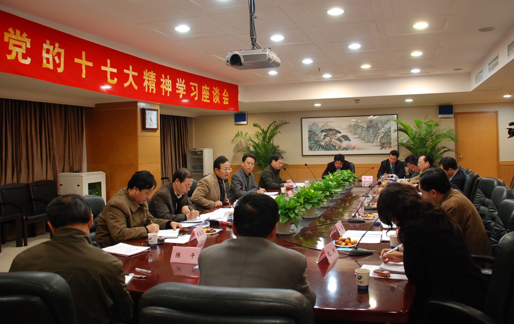 11月21日下午, 省委学习党的十七大精神宣讲团成员、省国资委党委副书记、副主任李德忠率领省国资委有关职能处室负责人等,专程前来我集团宣讲党的十七大精神,并主持召开了我集团下属基层党支部书记参加的十七大精神学习座谈会。集团公司党委副书记、纪委书记隋剑光、集团党群工作部有关人员以及来自集团相关成员单位的15个基层党支部书记听取了十七大精神宣讲并参加了座谈。