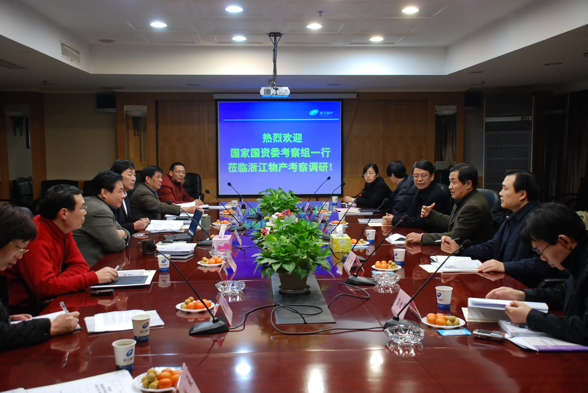 1月23日,以国务院国资委企业改革局副巡视员周放生(右三)为组长的国务院国资委考察组一行,在省国资委有关人员的陪同下专程前来我集团公司考察调研??疾熳槿险嫣×思殴镜澄榧?、董事长胡江潮代表集团所作的工作汇报,并对浙江物产集团在推进流通产业化、深化企业改革、完善公司法人治理、加强企业领导班子自身建设和企业文化建设等方面工作以及企业EVA情况等进行了深入调研了解。                  ?。ň菁疟ǎ?