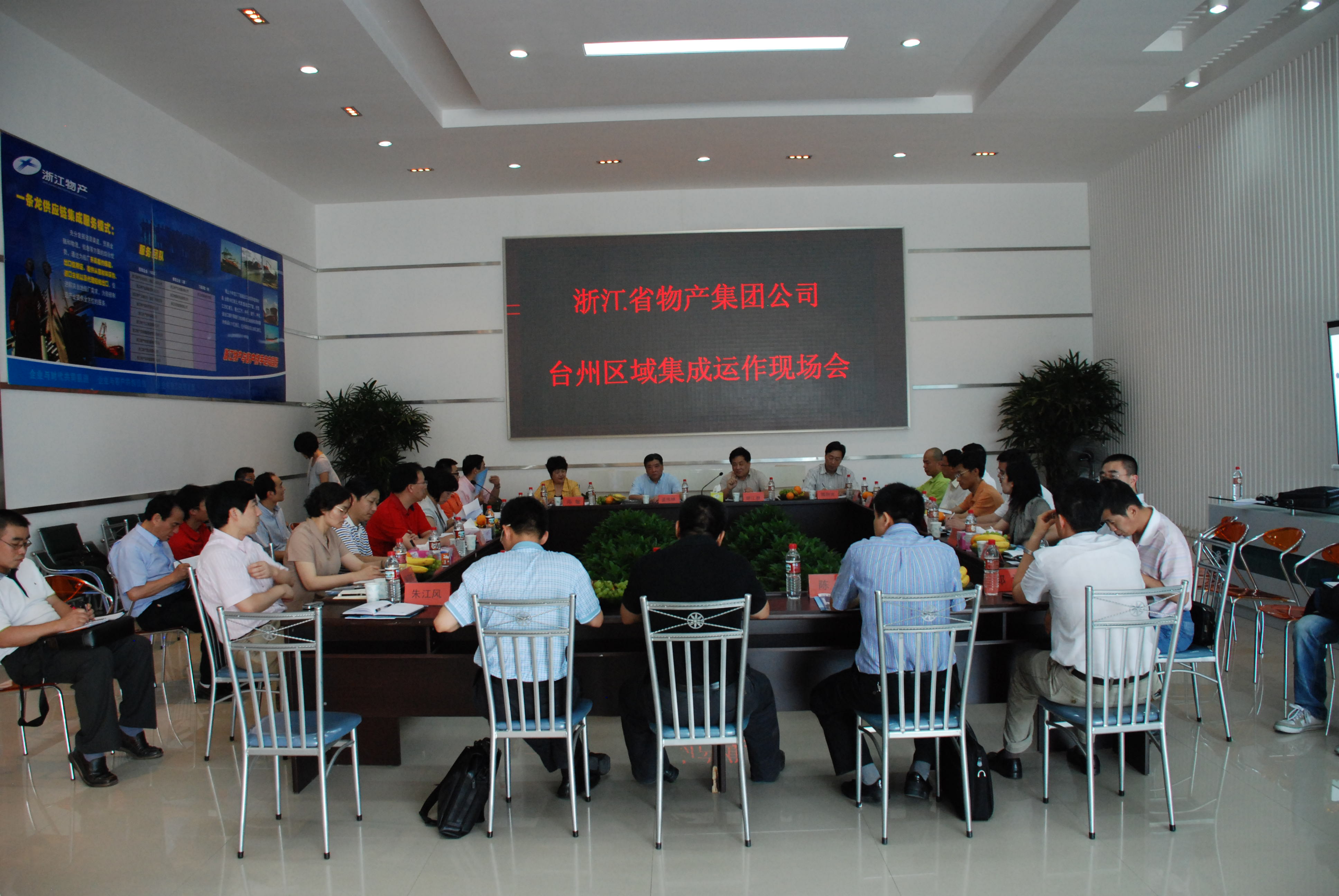 在台州考察调研期间,胡江潮董事长还在服务集聚区主持召开了浙江物产集团台州区域集成运作工作现场会。会上,胡董事长指出,集团在台州区域“要素集聚、服务集成、运作集约”的运作模式已初见成效,有力地推进了集团流通产业化事业和生产性服务业的发展。他强调,下一步重点是要围绕发展生产性服务业,发挥好集团成员公司的专业优势:物产金属要依托“浙金钢材”品牌,打造钢材连锁经营产业链;物产元通要推进“一牌两网”产业链延伸;物产国际要提升钢铁供应链集成服务;物产燃料要海陆联运中转拓展市场;物产化工要贸工结合发展医药化工;物产民爆要建立民爆产业链基地;物产物流则要信息、物流、金融结合发展现代物流服务,进一步完善商务、金融、资本、物流、信息、中介等服务功能,实施流程再造和扁平化管理,强化品牌建设,提升物产集团区域化集成运作商务模式,充分发挥好台州区域集成运作在发展生产性服务业中的示范、带头作用。