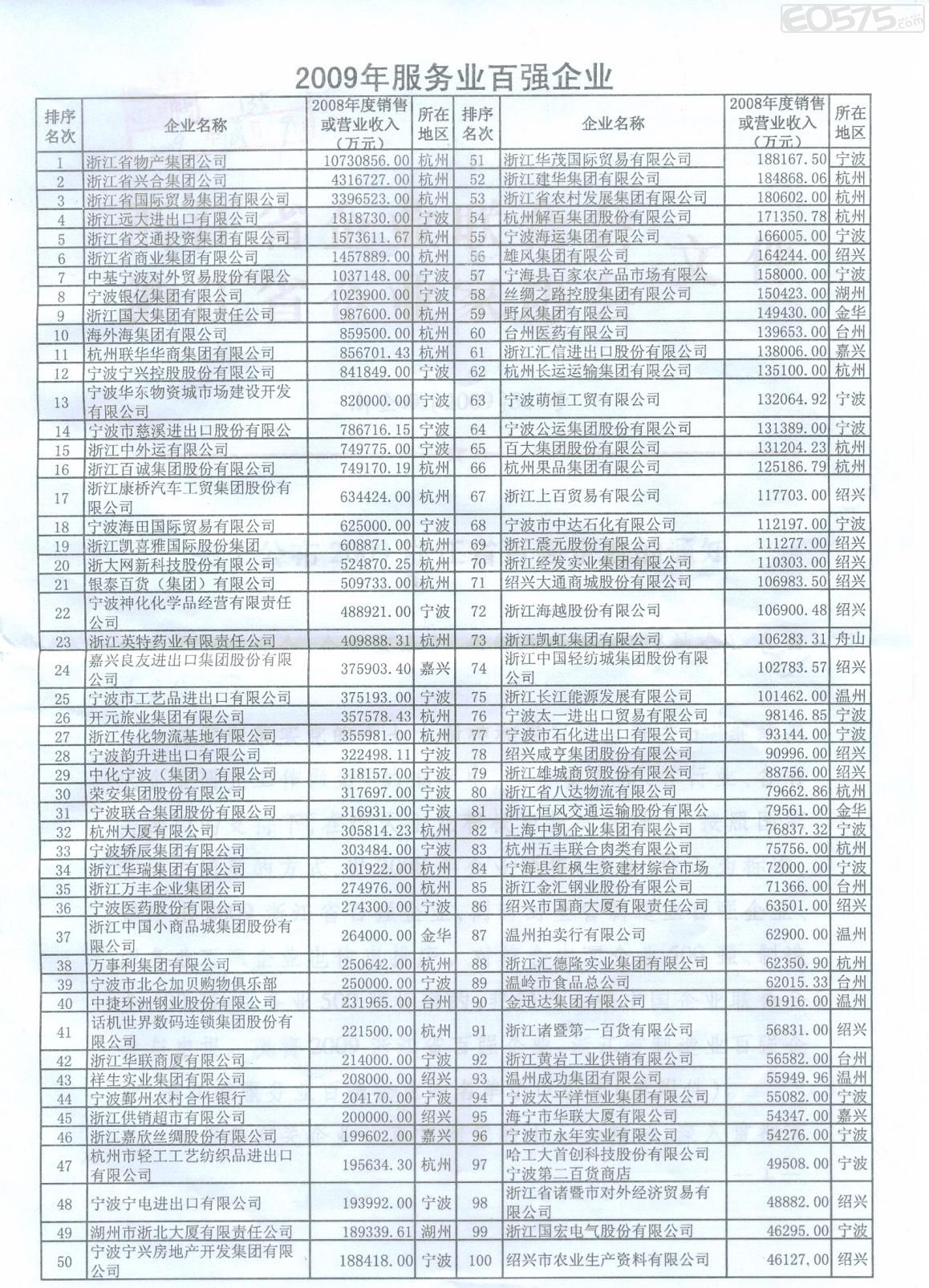 近日,浙江省企业联合会、浙江省企业家协会联合发布了“2009年浙江省百强企业”、“浙江省制造业百强企业”、“浙江省服务业百强企业”排行榜,浙江物产集团以2008年度实现经营规模1073.08亿元,再次荣登“浙江省百强企业”和“浙江省服务业百强企业”榜首。