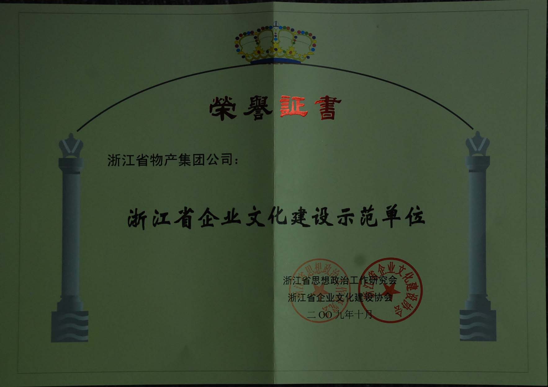 10月20日,由浙江省委宣传部、浙江省思想政治工作研究会主办的“2009浙江企业文化论坛”上,一批“浙江省企业文化建设突出贡献人物”、“浙江省品牌文化建设优秀企业”、“浙江省企业文化建设示范单位”获得了表彰。我集团公司荣获“浙江省企业文化建设示范单位”称号。