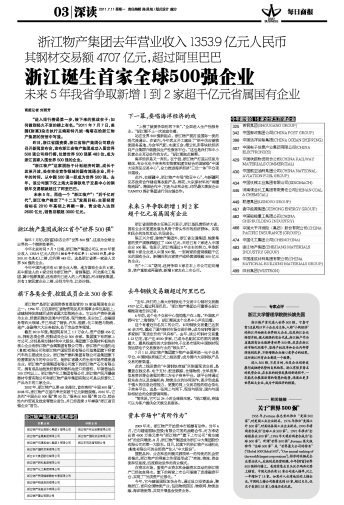 浙江诞生首家全球500强企业(20110711每日商报)