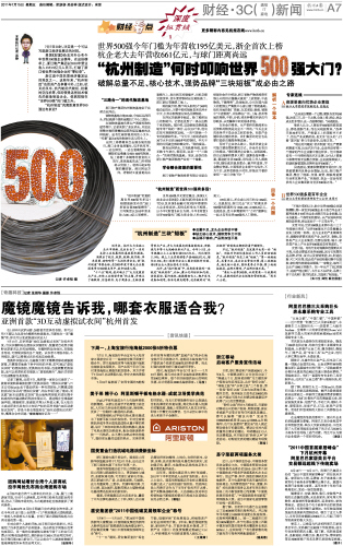 浙江是中国民营经济最发达的地区之一,这些年来,“杭州制造”也因其产品享誉中外,比如,杭叉的叉车、杭汽轮的汽轮机、杭氧的空压机等,但即使是这些技术领先的装备制造企业,依然徘徊在“世界500强”的门槛之外。